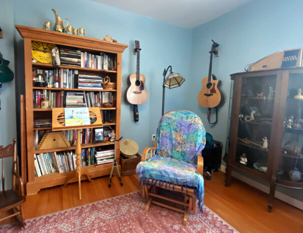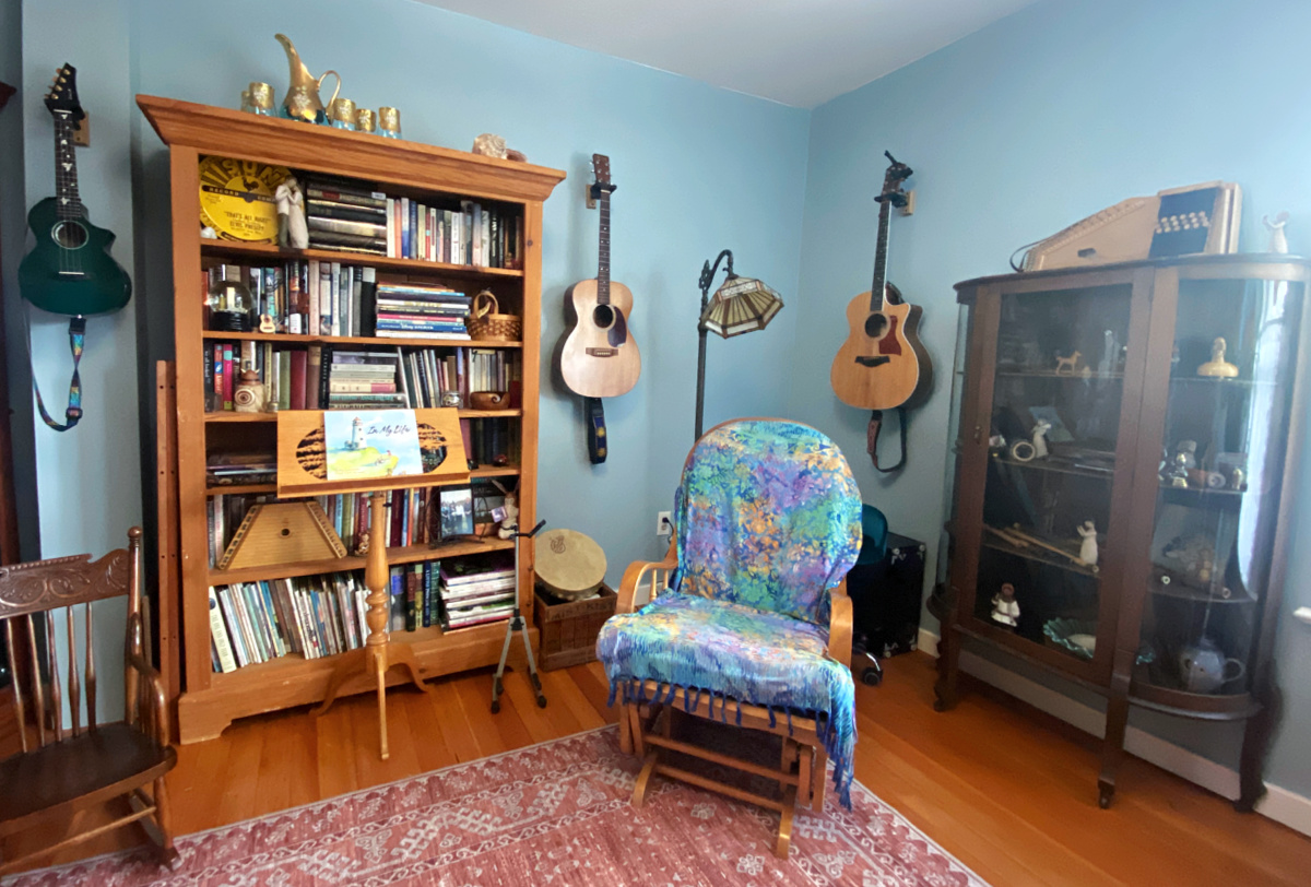 We invite you to enjoy our collection of loaner instruments during your stay! You’ll find them hanging along the stairway and placed on floor stands in the Music Room. Look for the instruments with round, green tags — these are available for guests to borrow. To check out an instrument, remove its tag and hang it on the Welcome board in the guest hallway, using the hook labeled with your room name. When you're finished, please return the instrument directly to Rick or Renee. If you’d like to use an instrument that's hanging on the wall, please ask a staff member to safely assist you.